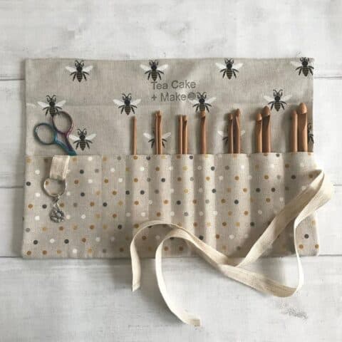 These stunning handmade fabric crochet hook rolls are both pretty and practical. Perfect to keep all your crochet hooks, scissors and bits and bobs safe and tidy. (I have lost so many hooks by not being organised with one of these!)