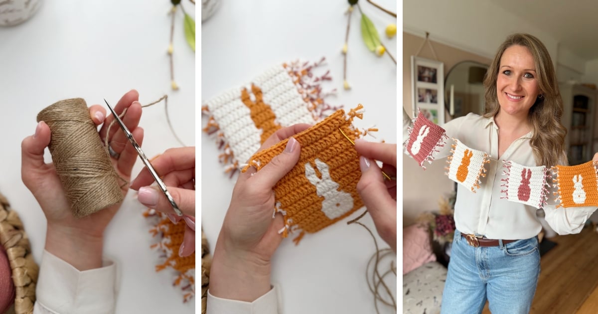 - You’ll then find below step by step instructions on how to turn them into a beautiful crochet bunny garland.