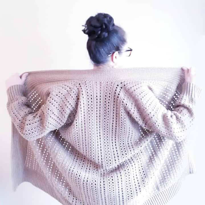 The Sydney Cardigan is a side to side crochet cardigan pattern with a ribbed knit look that's much easier than it might seem so perfect for your first garment.