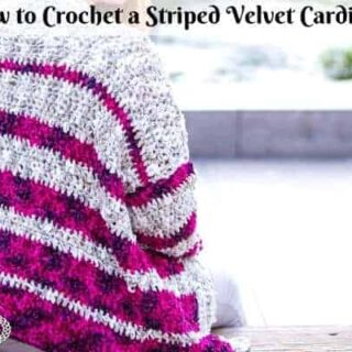 This luxurious velvet crochet cardigan is a perfect pattern for beginners! With easy stitches and straightforward colour changes you'll have it done in no time.