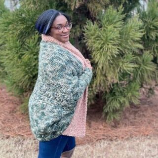 The Wandering through the Forest Cardigan is cocoon-style garment that is easy to make and easy to wear. It’s designed to be comfy and stylish for any occasion.