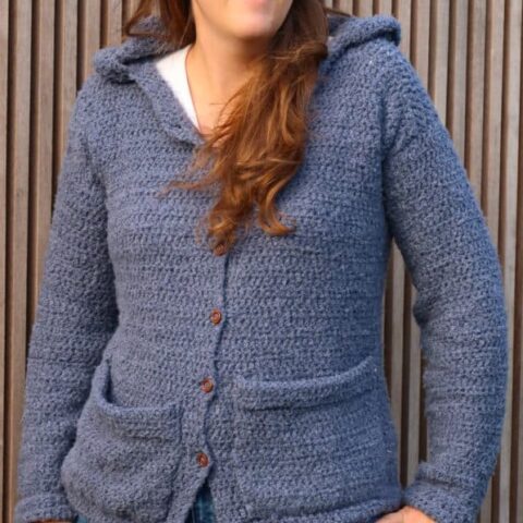The Aria Hoodie is a fabulous beginner friendly crochet pattern with a hood, pockets and buttons! Made in easy panels from the bottom up so you could easily make it sleeveless too!