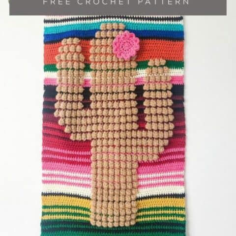 How about creating your very own piece of art to hang on the wall? That is what this cactus wall hanging pattern is all about. The cactus shape is created using the bobbles to make it really pop. And the striped background is really cleverly designed to represent the land and sky. There is also a solid background version if you prefer.
