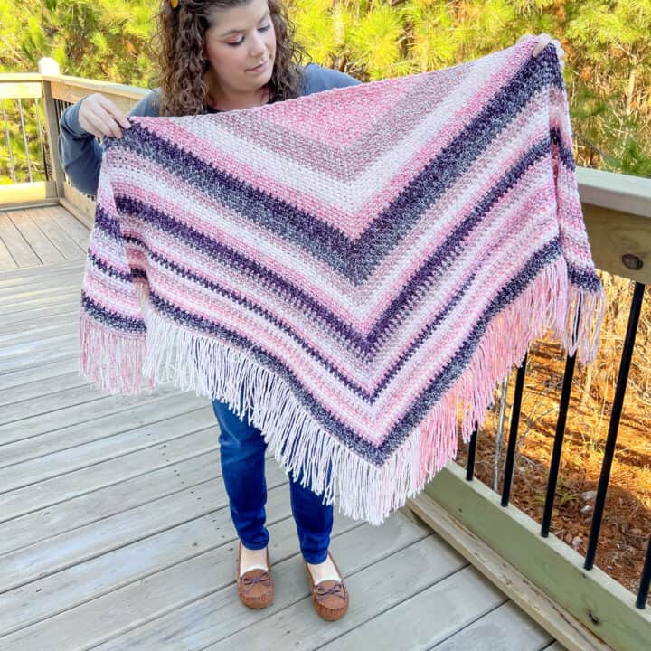 How versatile are triangle shawls? I love that you can wrap them around your shoulders and arms or use them as a scarf. They are literally wraps, shawls, and scarves all in one! With so many styling options and crochet techniques, you can make these free crochet triangle shawl patterns for any season, which is why I’ve loved putting this selection together!