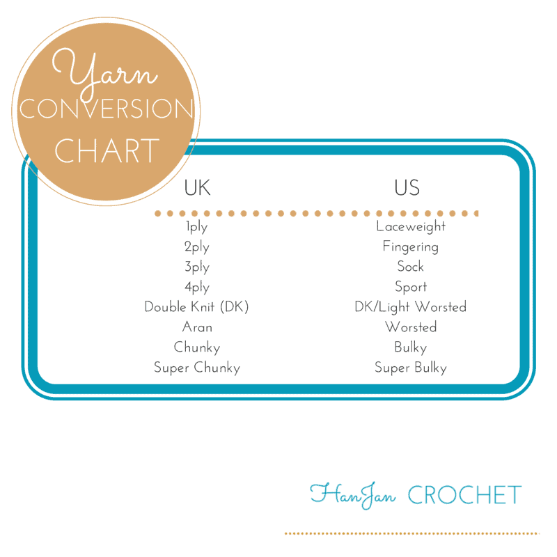 Just like hooks, I must admit I always forget what type of yarn converts to what and end up in a pickle until I check it up – so here’s a little chart for you to save and refer to when in doubt: