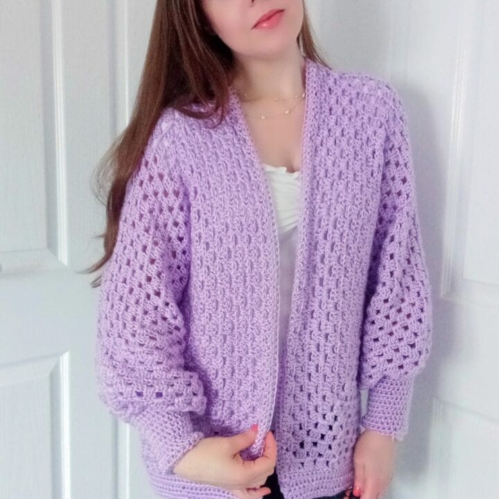 Hexagon cardigans are all the rage right now, and this one is no different. With a beautiful shape and tapered sleeve, this is going to look gorgeous on anyone. Made with two identical hexagons that are then stitched together, before adding the cuffs and edging. This makes it a great beginner project.