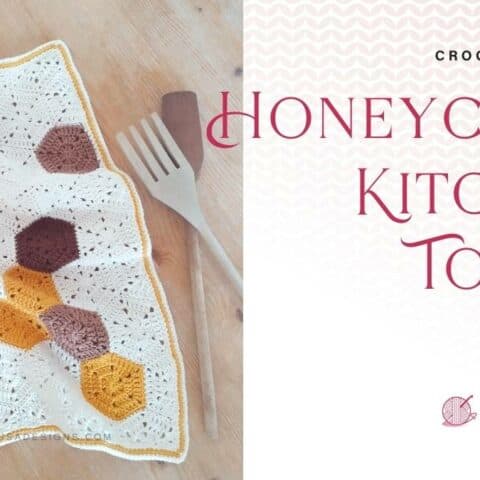 The Honeycomb Kitchen Towel pattern is perfect for all bee-lovers out there, and indeed for anyone who loves that honeycomb pattern. I certainly do and I think it fits perfectly into a farmhouse-style kitchen. Made with hexagons and half-hexagons that are then joined together at the end, this is another great beginner project.