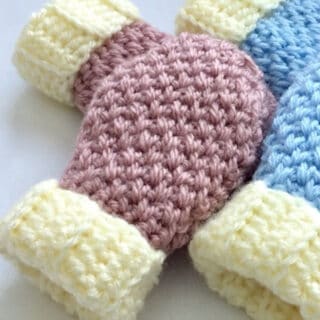 Keep baby toasty this winter with my free baby mittens crochet pattern. These cosy little mittens feature a ribbed double cuff and textured stitch pattern.